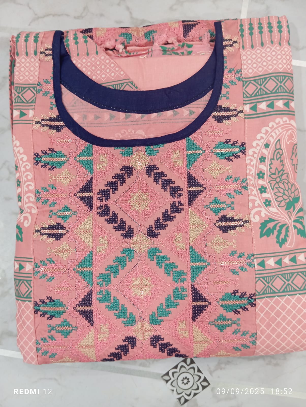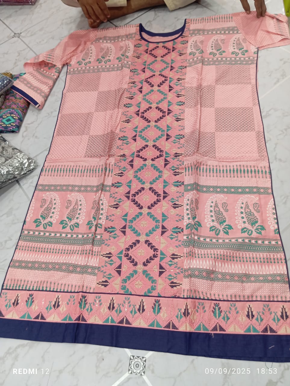 Aarong pure cotton with embroidery secuince work code RO 9015